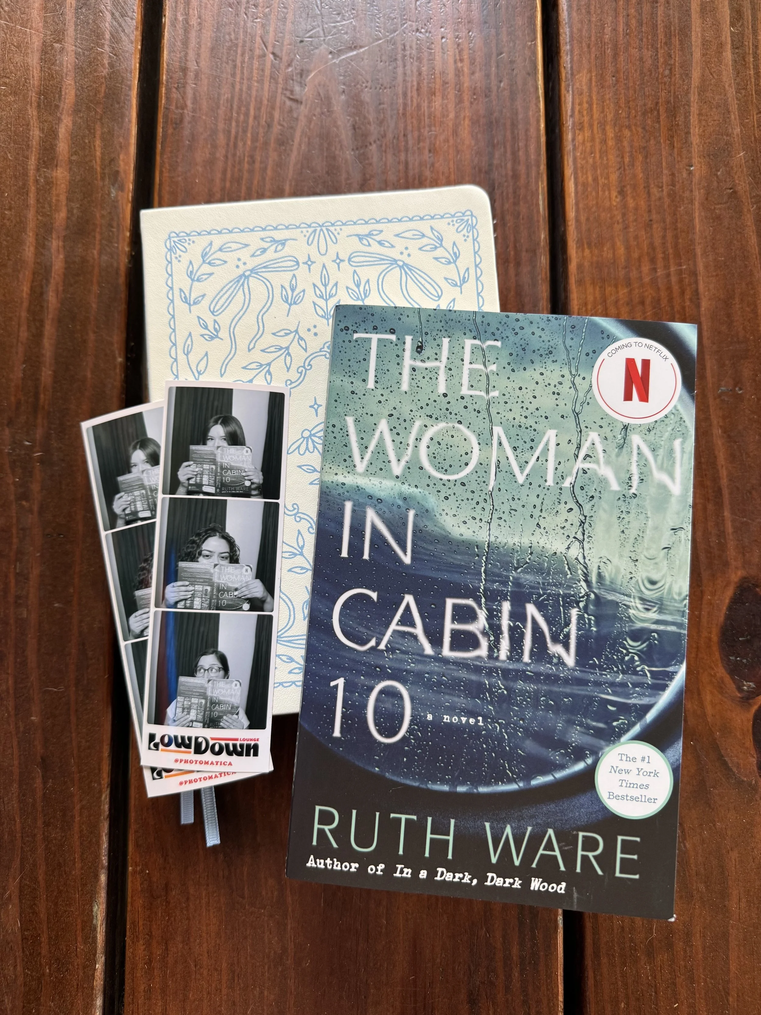 this time, we’ll be crafting personalized punch cards & bookmarks and watching the movie + discussing The Woman in Cabin 10 by Ruth Ware!